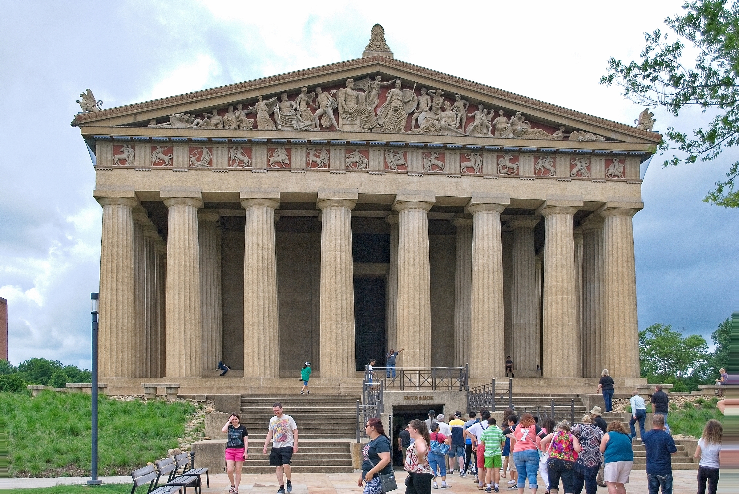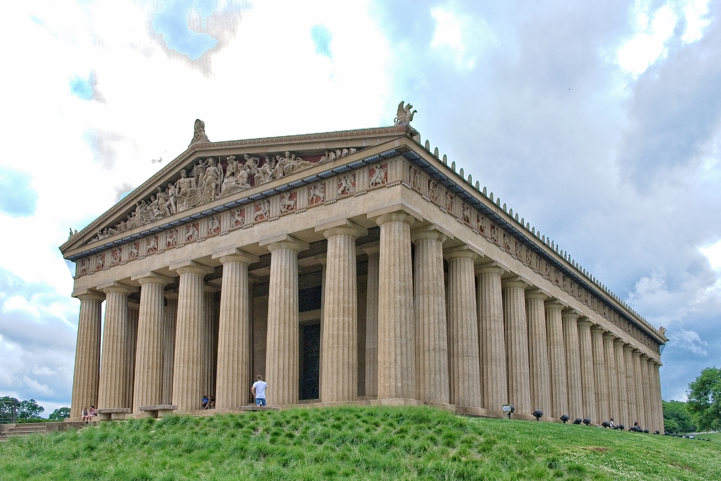 Here a building with not a single window showing. Yes, it doe look familiar. Nashville is home to a full-size reconstruction of the Parthenon in Athens, Greece. Not as it is today, but as it might have been some to millennia ago.